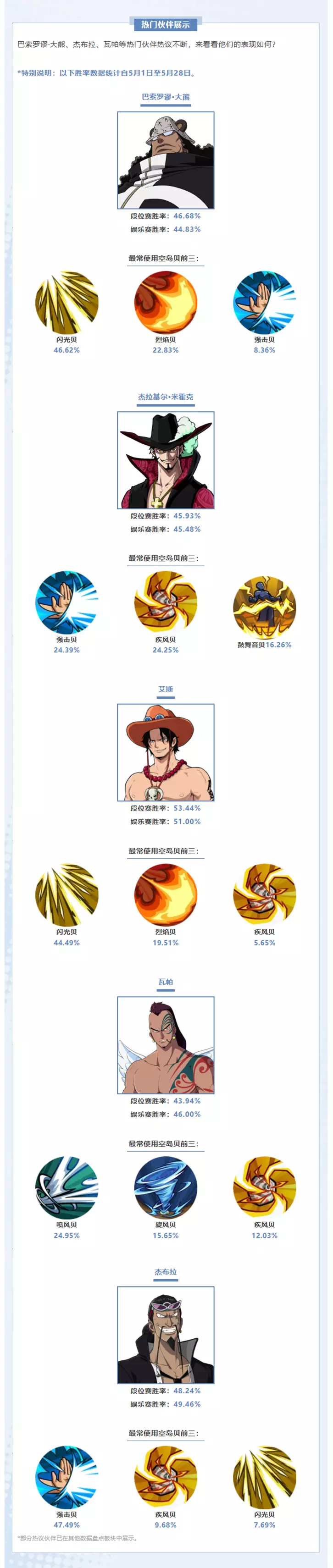 5月伙伴数据请查收!看看在风云变幻的竞技场中,哪些伙伴突围而出: