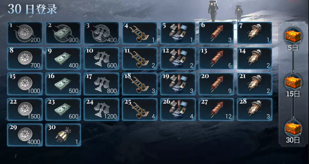 累计签到5天,即可获得专家宝箱,抽取有特殊技能的神秘专家,专家的技能可以大幅提升对应资源的产能,助力营地的发展,累计签到满15,30天还可以获得额外的专家宝箱。