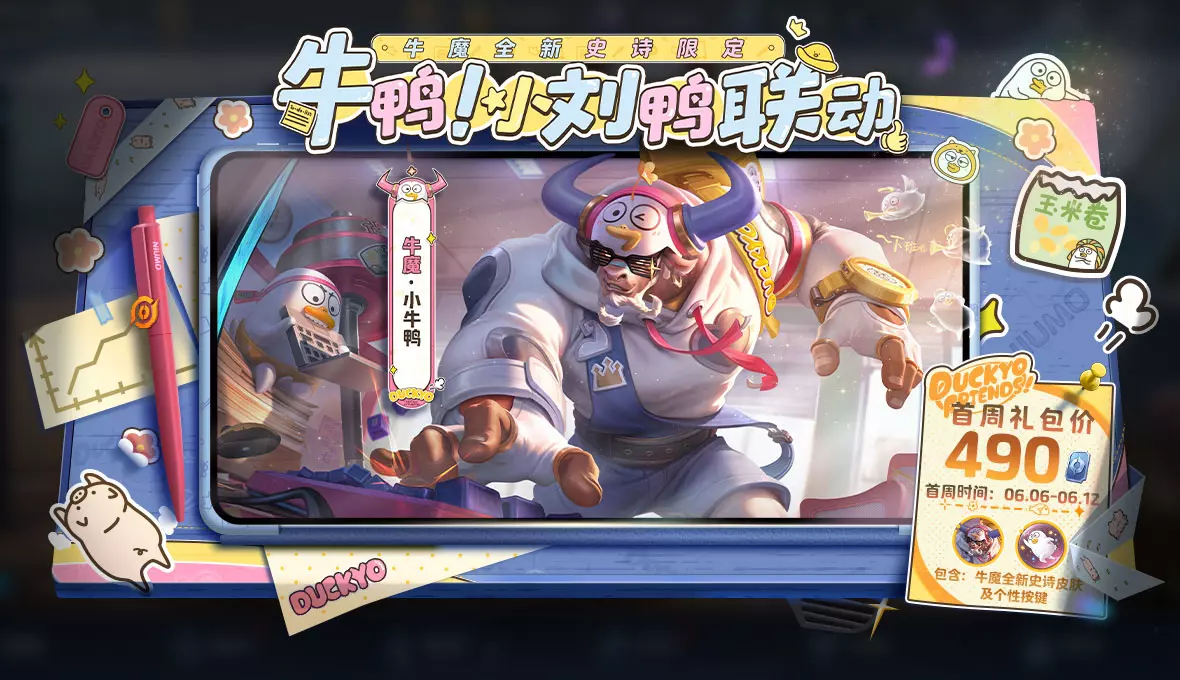 开启牛魔小牛鸭联动超值礼包,可获得牛魔-小牛鸭皮肤x1、小牛鸭个性按键x1