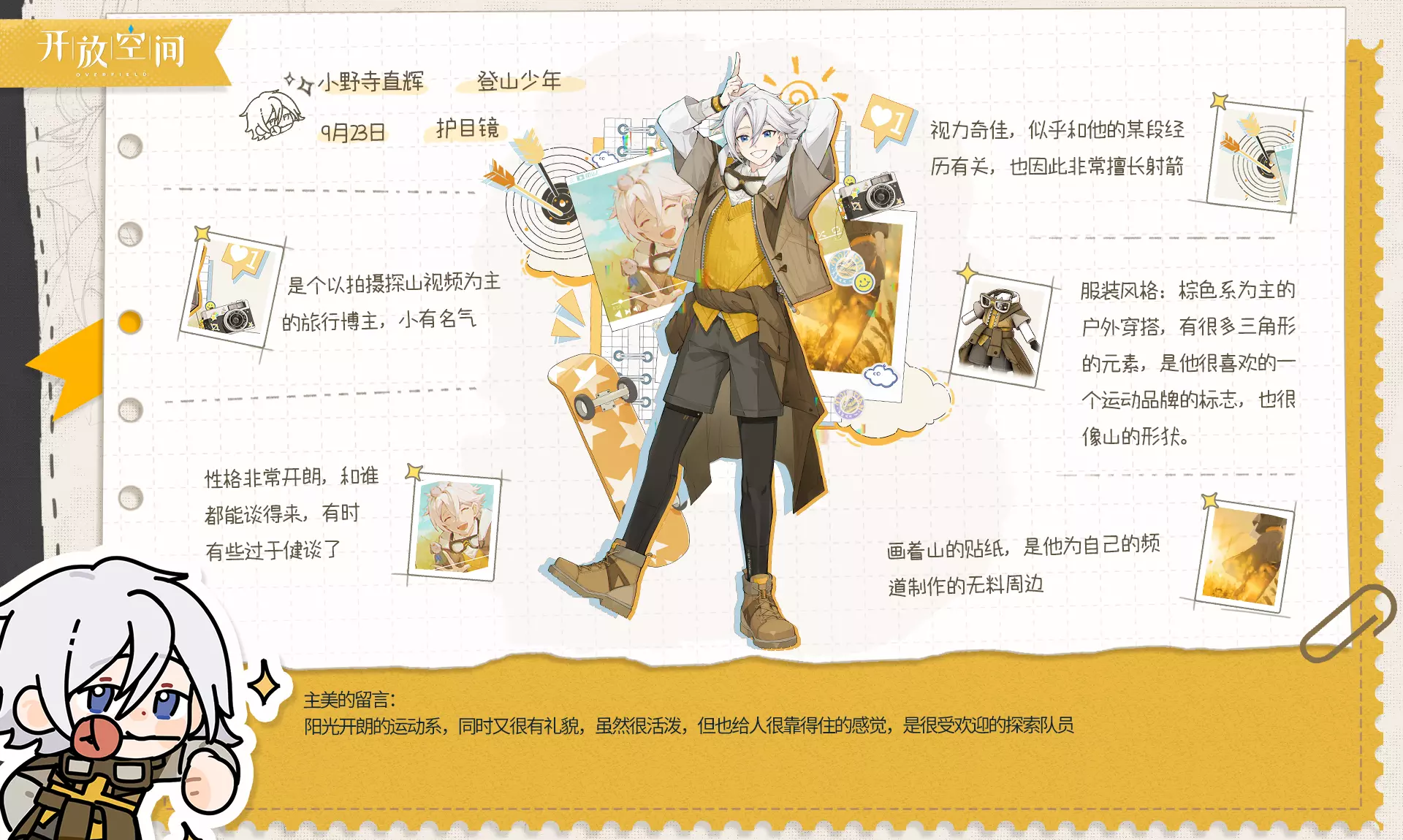 阳光开朗的运动系男孩直辉,是很受欢迎的探索队员哦!