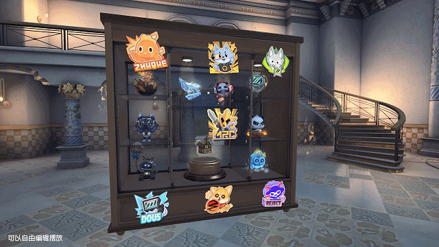 *可摆放访客们拥有的冠军专属随从和冠军随身物品,还可以摆放战队夺冠的捧杯照藏品和FMVP藏品,另外家具表面可喷涂和编辑赛事相关涂鸦,上限为50个。