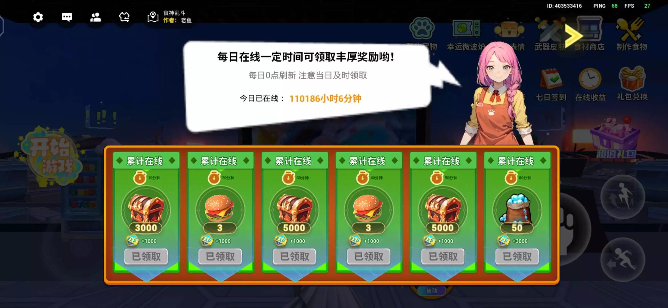 今日完成在线奖励