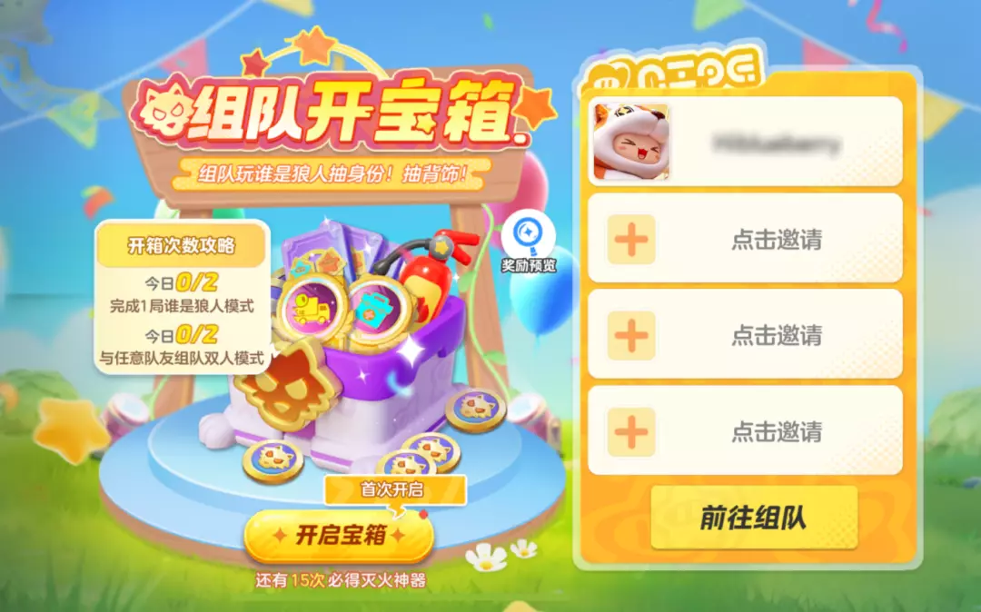 邀请搭子组队或完成任务获取开箱次数