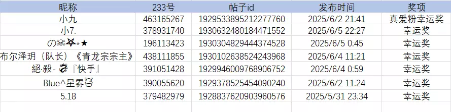 🌟恭喜以下幸运玩家:
