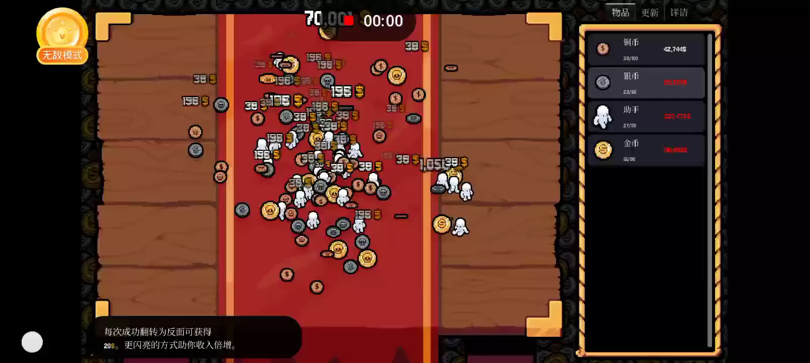 抖音B站超多主播在玩的爆款游戏!幸运硬币是一款放置型休闲游戏,在这里你可以通过抛硬币来赚钱。购买更大更好的硬币,解锁升级,并雇佣小帮手来自动化整个过程,为你处理所有繁琐的抛掷工作。简单、满足、奇异地令人着迷…… 【购买硬币与升级】 你拥有的硬币越多,就能抛得越多。购买升级,使它们抛掷得更快并产生更多收益。探索不同硬币类型之间奇妙的互动与意想不到的协同效应。 【自动化】 雇佣小帮手为你处理所有手动劳动。他们不会抱怨,也不会质疑。 【飞升】 舍弃你的财富,迈向更高的境界。重新开始,获得以前未曾拥有的奇特天赋。进步感觉自然……仿佛受到指引。 【繁荣】 欣赏你的财富,放松身心,观看你的自动化抛币帝国不断壮大。一种淡淡的满足感涌上心头——随后消逝,只留下对更多的渴望……