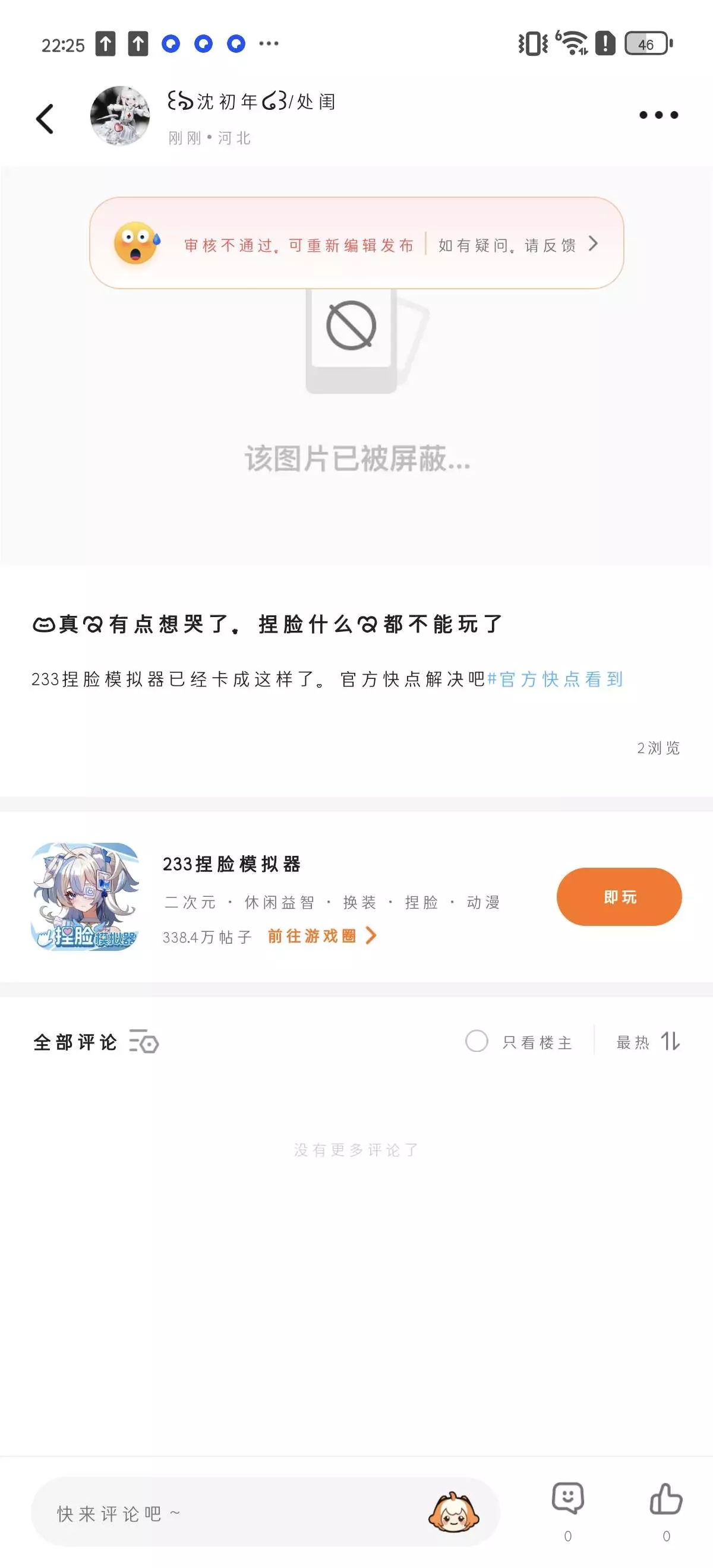 跟官方反映帖子还违规了
