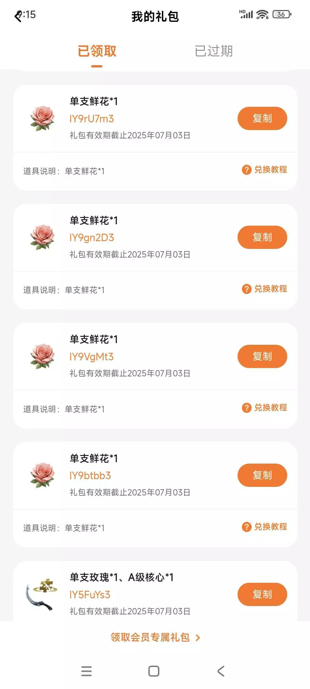 刚抽的兑换码还没有用