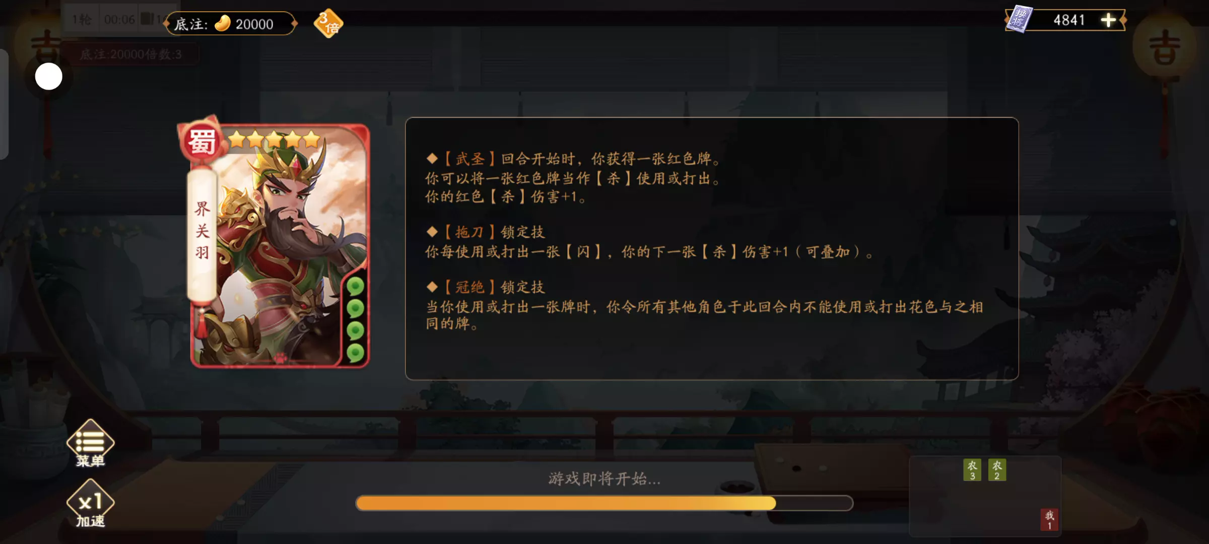一局三个关羽少见