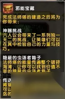 最开始出现的这些建筑提供的BUFF,在这个版本也有了改动。 法师塔 邪能宝藏