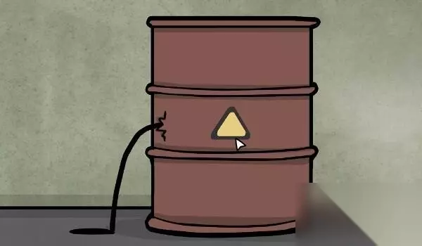 7、用撬棍将油桶戳出两个洞来让油流出去。