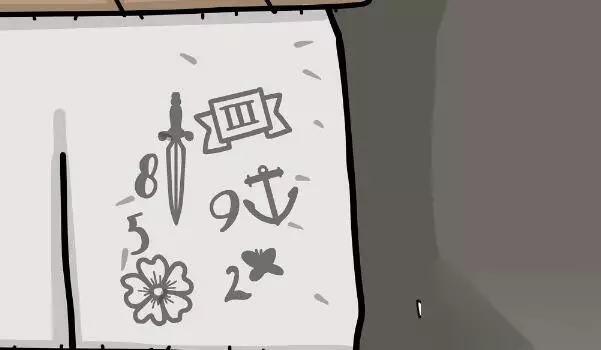 14、融合墙壁上线索和男人身上的刺青得到密码4195。