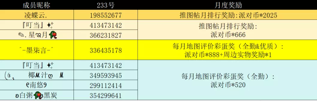 🎊6月月度奖励(地图评价彩蛋奖+推图帖月排行奖励)