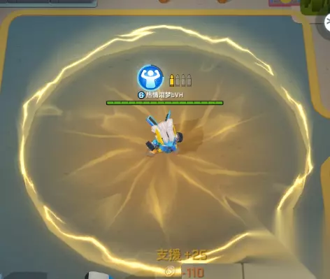 能力描述:开始原地蓄力,吸引并减速自身大范围内的敌人,可以随时再次激活技能,对范围内敌人造成随蓄力时间增加而增加的高额伤害。 伤害:50~200 金币消耗:120 技能CD:12s 技能3:涡轮护盾