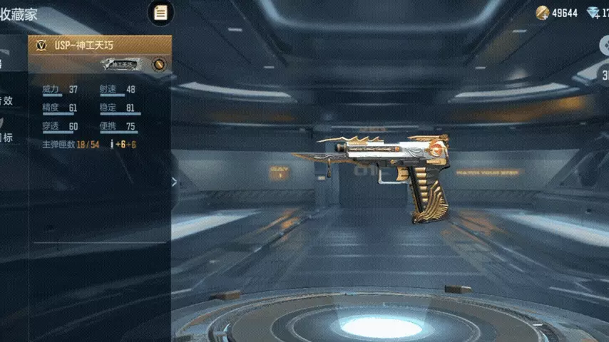 而副武器USP-神工天巧则是由手工烧制陶瓷奢华的黄金打造而成,和主武器交相辉映,外观设计上一脉相承,而且具备快速换弹的独特属性。