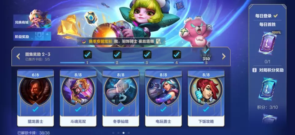 传奇图集S2赛季·阶段三开启倒计时4天!召唤师完成阶段二卡组收集即可领取集萃晶石*3000、传奇宝钻*15、银色星尘*350等奖励~