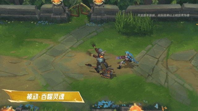 内瑟斯对目标挥动火焰战斧,获得一定的物理吸血加成,同时身上会出现青绿色的回血效果。