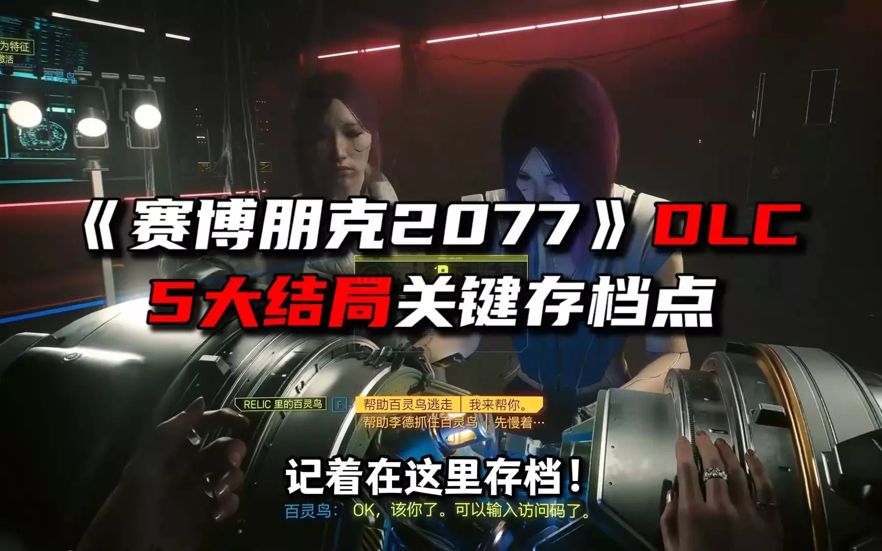 结局四 宝剑国王 - 带百灵鸟回家 「宝剑国王」结局有两个触发前提,首先是在「审判日」任务中选择帮助百灵鸟逃走,背叛新美国(记得在来到此对话之前进行存档备份,游戏也会留自动存档),然后在「比远方更远」任务中选择将百灵鸟交给李德,看完结局即可。 本体新增结局 高塔 - 完成任务「只身打马」 「高塔」是《赛博朋克 2077》追加的全新结局,需要玩家完成「往日之影」的指定结局才能继续触发。「往日之影」的四个结局中,「权杖国王」结局不会对本体结局造成影响,也就是说无法触发本体高塔结局。 其他三个结局中,「圣杯国王」和「宝剑国王」这两个结局后,V 需要等李德的电话才能继续推动高塔结局,本作的等电话设计比较玄学,如果玩家此时的存档已经把能做的都做了,可能需要等比较长的时间才能接到电话,所以若是想看高塔结局,建议在「往日之影」中完成「钱币国王」结局。 完成「钱币国王」结局后,李德会直接给 V 发短信联络,在狗镇篮球场和李德对话后,回家在床上睡 24 小时即可接到李德的电话,直接去米斯蒂占卜房楼顶(也就是本体触发其他结局的位置),即可选择触发高塔结局。