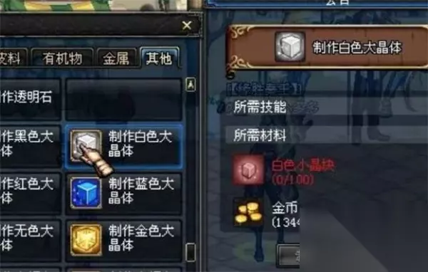 白色大晶体主要的获取途径是通过制作。制作需要用到白色小晶块和金币作为材料。 制作流程: