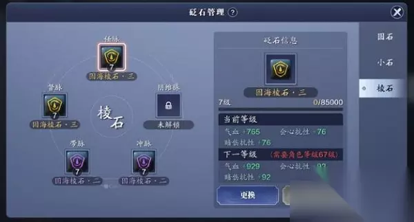 丐帮砭石 小编推荐: 砭石推荐: 圆石-赋力圆石、力韧圆石;金色选择强蕴圆石·三 小石-攻心小石、催心小石;金色选择三势小石·三 棱石-紫色与金色都使用固海棱石