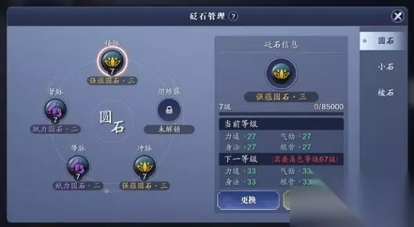 砭石的选择建议以门派的主属性为主,像圆石可以选择主力道的力韧圆石; 游戏的前期,可以选择以蓝色的砭石为主,在这个阶段对于属性没必要太过于挑剔,有就患上; 经脉砭石装满时,若是想要继续提升,如果需要兼顾砭石品质以及狗粮,此时可以选择游侠南华蝶来挖宝,此时的南华蝶并不是天水蝶;