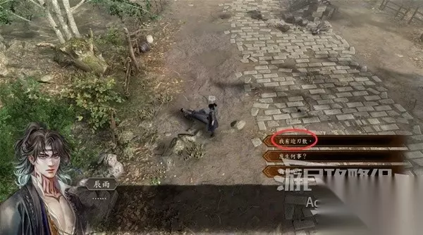 商道上有个受伤的人比较奇怪,给他迎刃散(刚在镖局里捡到的)。