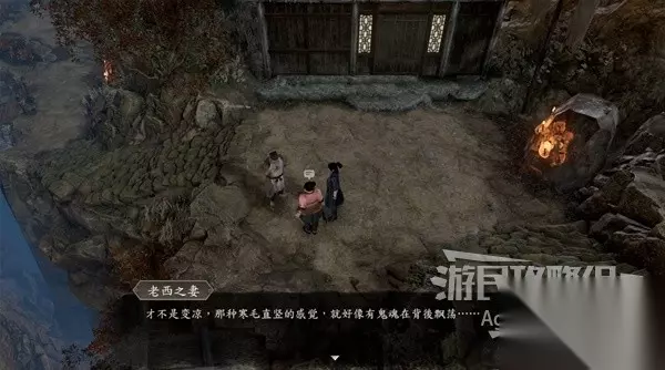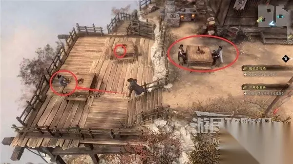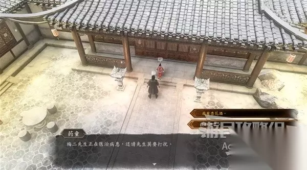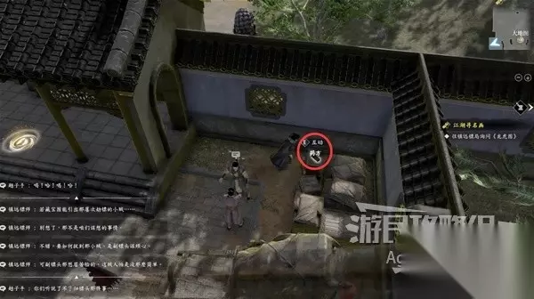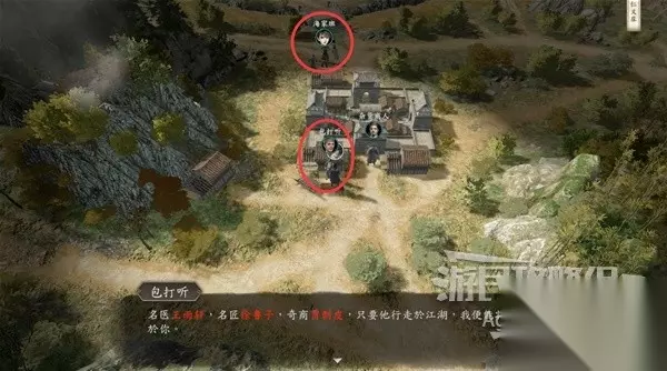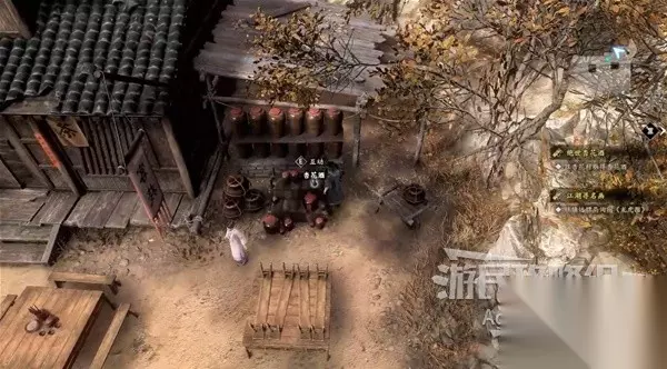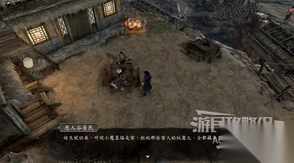 下图位置有个小女孩,她会给你包药粉,要你去给客栈对面的疯老婆婆的茶壶里下毒。 和谷里的众人对话,除了可以询问师姐的信息,还可以询问关于这个小女孩和疯老婆婆的信息。