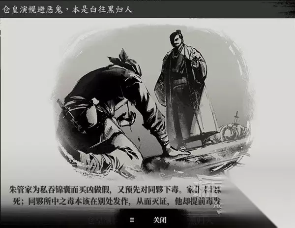 推理出结论后,找朱管家或楚留香提供结论。 以上是正确推论,所以提供结论后你会看到专门制作的过场动画,并得到楚留香的智商认可。