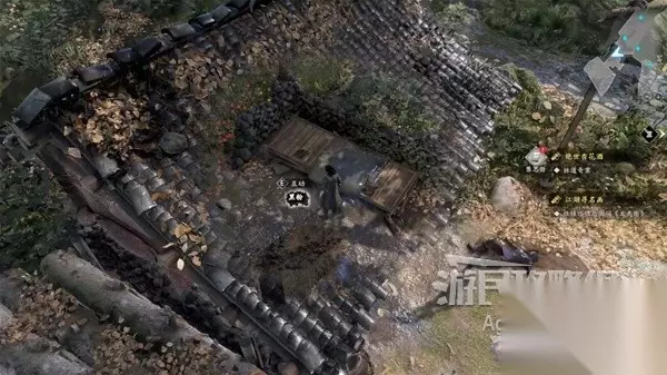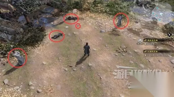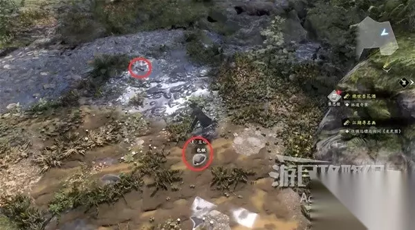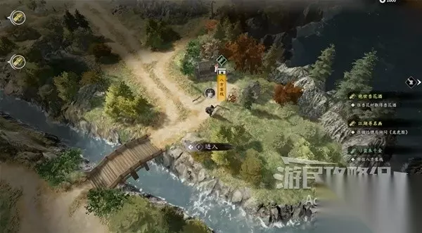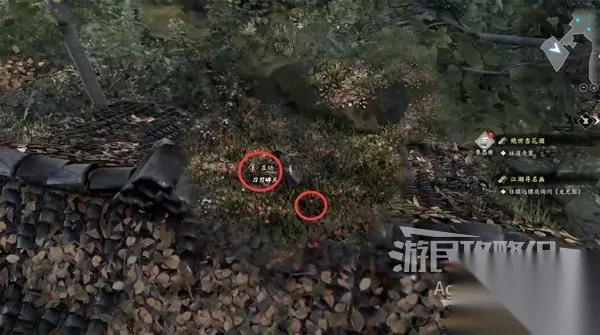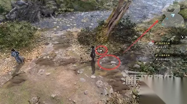 一路上在河边还能看到多处花瓣和脚印,走到头在河里捡到木棍。 在河边捡到包袱,获得【招式秘籍】砍山刀。