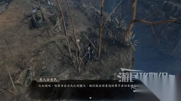 杜杀居外的人提示你,扔石头砸猴子,猴子会把果子丢给你。
