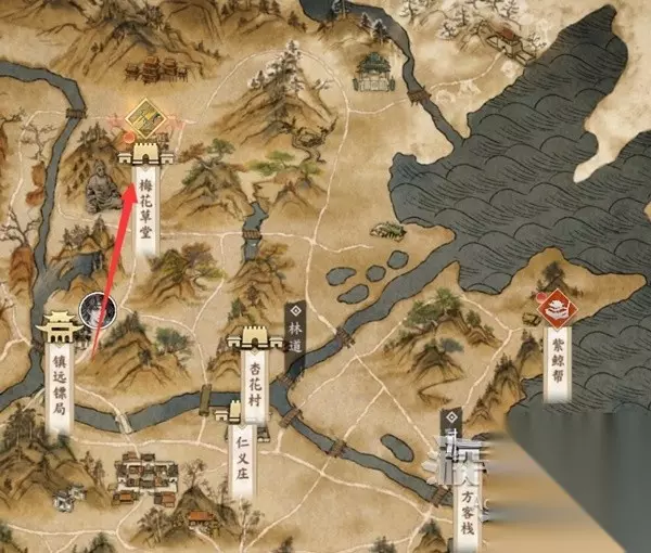 文章内容导航 第一章-梅花寻旧忆 往北前往梅花草堂。