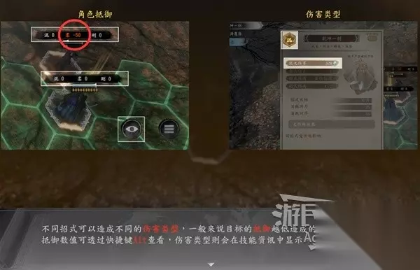 序章-入谷如登天 战斗时随时注意按Alt查看敌人的弱点,以选择混、柔、刚三种类型的招式来攻击。