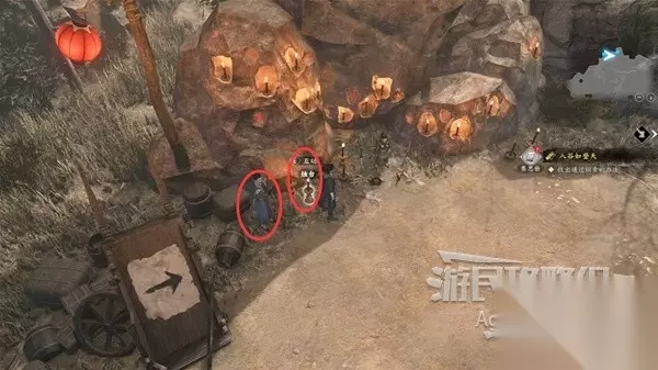 来到恶人谷口,地图上的蓝点都是可以对话的人,去聚了一堆人的地方看看。