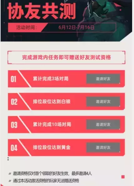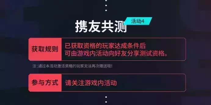 薪火相传,瓦火不熄!资格传火活动于6月12日和测试同步开启!已获取资格的玩家在游戏测试开启后,于游戏内达到条件,即可通过分享测试资格邀请其他小伙伴一起参与本次测试!