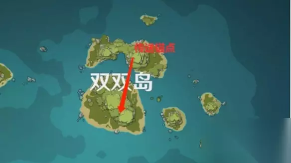 2、双双岛所在传送锚点后传送至该位置,按照如图所标记方向前进; 该处壁画所在位置位于标记处下方的石壁上;