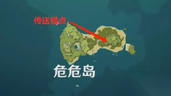 3、危危岛所在传送锚点后传送至该位置,按照如图所标记方向前进; 该处壁画所在位置位于标记处下方的石壁上