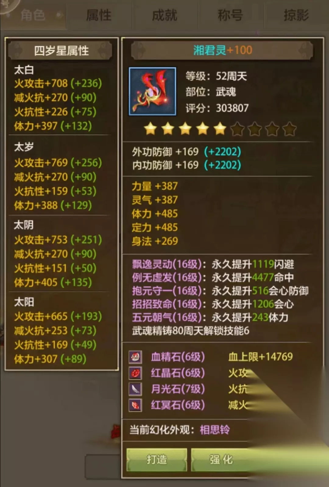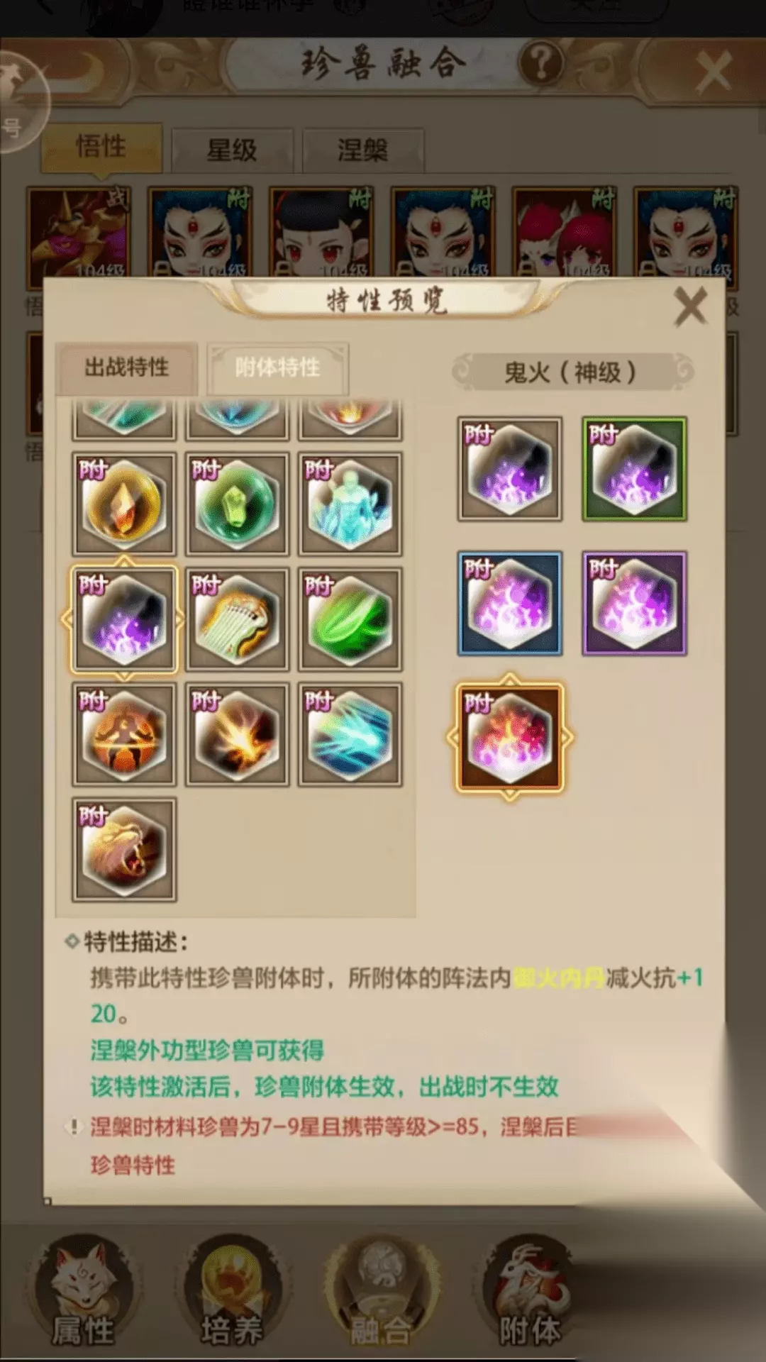 武魂:火攻、减火、火抗、体力 优先升等级升星,润魂石头凝出推荐就保存