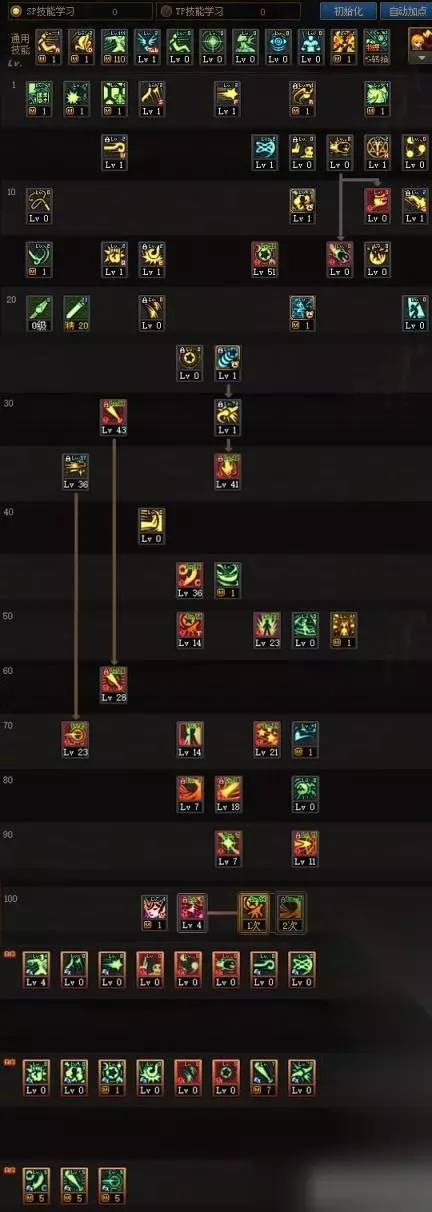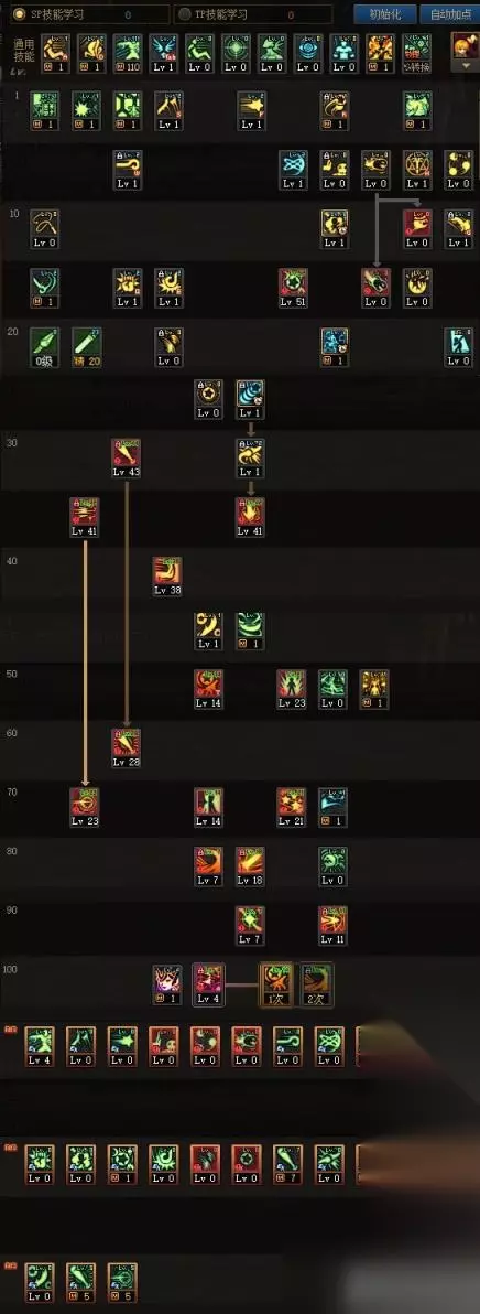 战法通用技能方面,由于战法不缺暴击所以暴击可以不点,聪明矛需要的远古记忆可以从小拉拉中扣除,由于战法核心续航技能【炫纹强压】的护石【无限炫纹】需要炫纹进行增伤,所以这里推荐新手点满自动炫纹保证一定的获取量,熟练玩家懂得控球也可以点1,技能方面由于团本无法长时间吃到增伤输出,故舍弃了强袭,可根据个人需求进行调整,物理力量的战法玩家不需要学习贝亚娜之蜕,使徒封印不需要学习,护石搭配见《护石篇》。 TP方面加满了主要的输出技能。 2、生存续航流加点