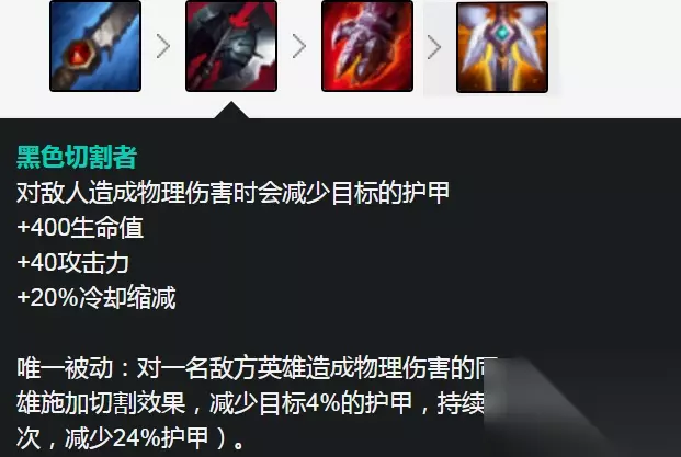 而打野刀的话推荐红色战士打野刀,红惩可以增加蔚的输出伤害,减少自己先手进场开团所受到的伤害。有一件输出装很适合蔚,那就是黑切,蔚的W本身就可以减少目标20%护甲,再加上黑切的的减少百分比护甲,蔚的战斗力在众多打野英雄中都是颇为强悍的。防御装有两件优先级很高,血手以及守护天使,可以大大增加蔚进场开团后的生存能力。