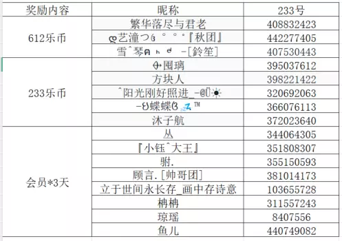 恭喜以下玩家获得此次活动奖励,奖励将在开奖后15个工作内发放,请注意留意您的账户~