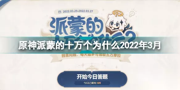 原神派蒙的十万个为什么2022年3月 派蒙的十万个为什么第四期答案汇总 原神派蒙的十万个为什么第四期答案是什么?原神在2022年3月开启了派蒙的十万个为什么第四期活动,本次派蒙的十万个为什么只持续3天,接下来就让我们来看一看本次派蒙的十万个为什么答案大全吧。