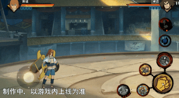 雨琉在地面释放一技能时,会原地结印快速补充飞行器的查克拉,结印时会炸气对附近敌人造成伤害,飞行器查克拉对应血条下方的能量条。