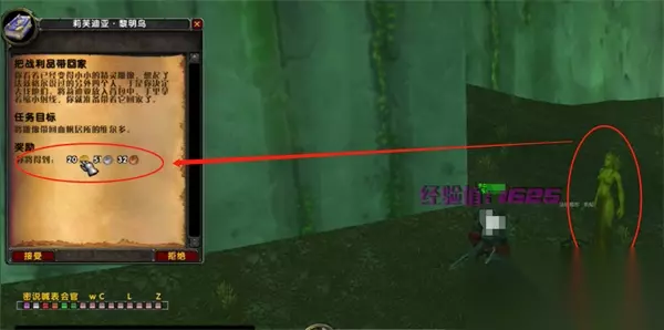 3、接下丛林中的精灵的任务,然后前往地标25,52找到一个精灵。在他旁边有一个奥术师索瓦提尔的撕裂笔记,点击它以接受任务。完成任务后回去找未都独牙交还任务。