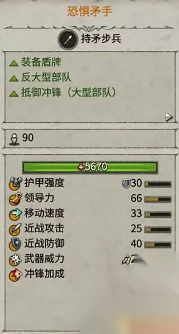 正面作战的基础部队,能够抵御敌人的远程攻击。 各方面比较均衡。