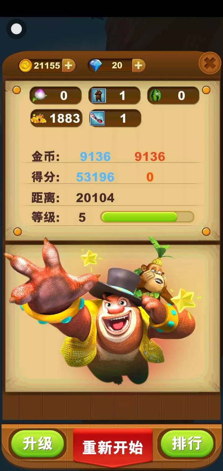 我玩熊出没路5万多分,9136金币。