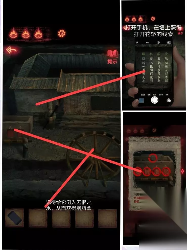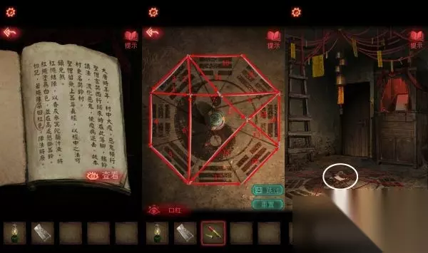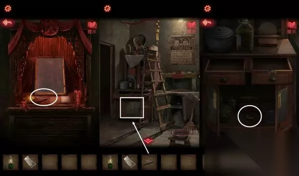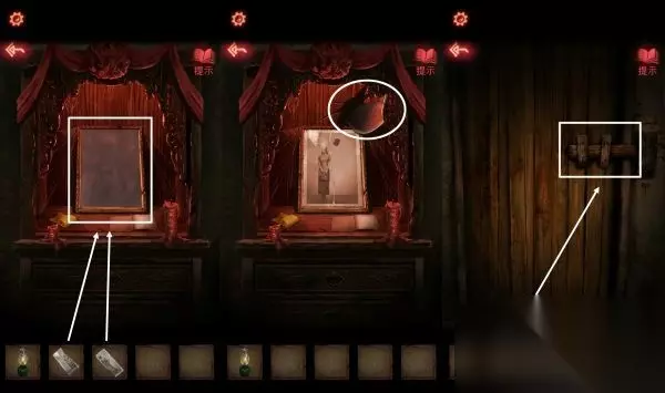 13、根据神龛上的书说,口红点击坛子,将绳子涂红,之后坛子会破碎掉,里面掉落【半张照片】。