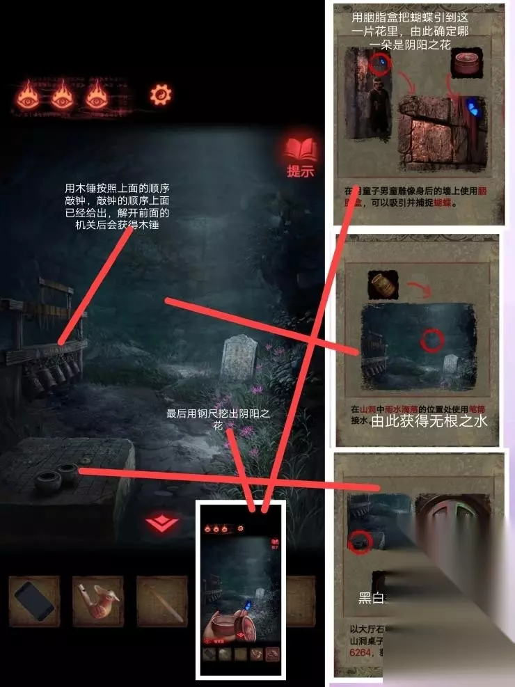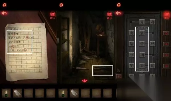 11、圈出来的字解开地面机关密码:漫情相离,下去是一个地下室。