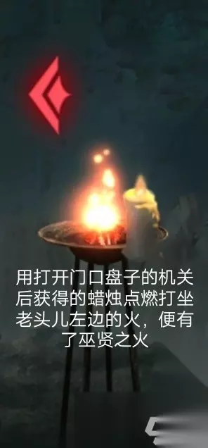 2、用打开门口盘子的机关获得的蜡烛,点燃打坐的火;