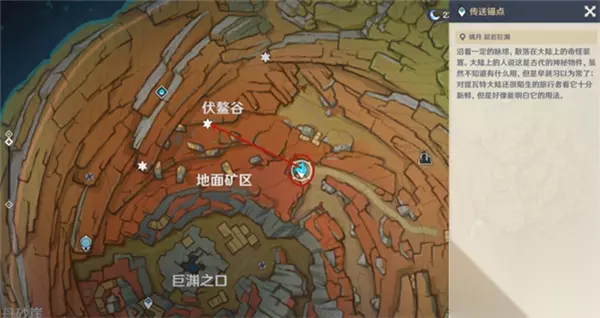 5、第5个老石的位置。从巨渊之口传送点,爬上山去,一直走看到洞口跳下去获得。