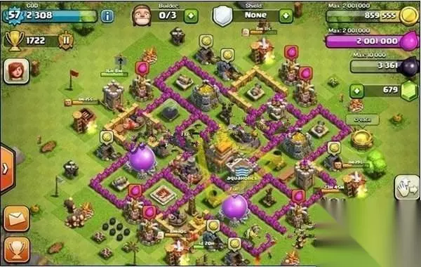 这款阵型是由九本的有个多圈扁平阵型改编而来。 目前部落依旧有成员在使用这款阵型。标准护黑保金阵型。 这里依然会为大家从优势和劣势两个方面介绍。 优势: 1. 显而易见,这款阵型将黑水罐内置,可以最大程度上实现护黑。 2. 金库全部内置,保证金库的安全性,同时双水库在内二圈内,也不容易被攻破。 3. 大本外置,赚取保护没有争议。另外双侧两重城墙布置。可以最大限度的增加进攻难度。 劣势: 这款阵型之所不完美就是很容被对方从12点钟和6点钟方向攻进去。 虽然说这两个位置布置了陷阱弹簧,但是只要打进去一个, 炸弹人就可以很轻松的扎进去内墙,拿到金库。所以,这一点还需要调整。 部落冲突7本神阵TOP 6: