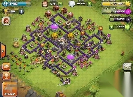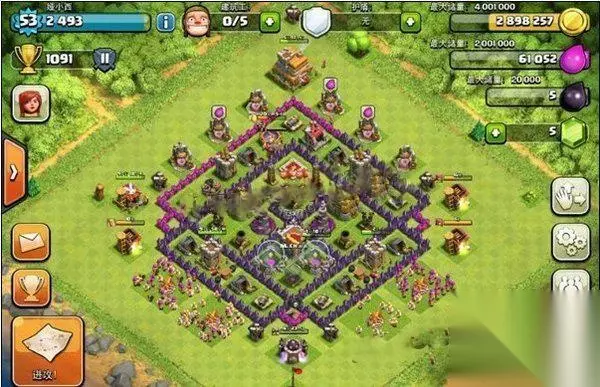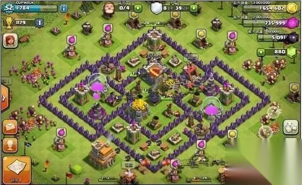 7本老四,跟第一第二相比,综合方面可能不如, 但在7本中已经很厉害了,此阵偏向防守类的,可以有效的保护资源, 这个阵型的城墙和建筑都是贴在一起的完全没有流出一点空隙。 这样的话有一个优点就是弓箭手完全发挥不出来他远程的优势偷不到建筑了, 里面的防御塔可以提供充足的输出和支援。 本贴有隐藏内容,如需查看请回复
